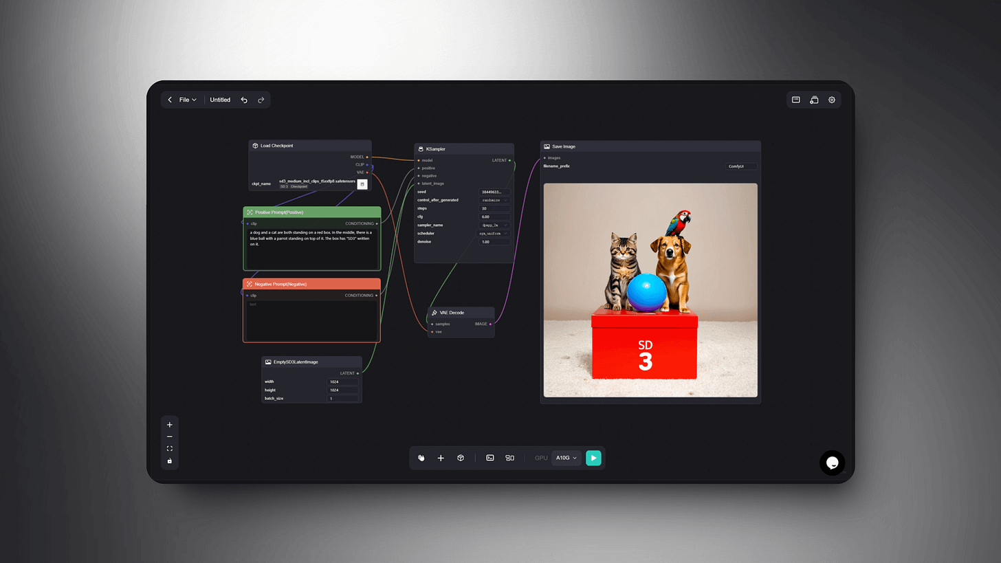 The highly anticipated Stable Diffusion 3 is finally open to the public. Specifically, the model released is Stable Diffusion 3 Medium, featuring 2 billion parameters. Its compact size and low hardware requirements enable it to run effortlessly on ordinary laptops. As Stability AI's most advanced open-source model for text-to-image generation, SD3 demonstrates significant improvements in image quality, text content generation, nuanced prompt understanding, and resource efficiency. Today, we will delve into the features of SD3 and how to utilize it within ComfyUI.