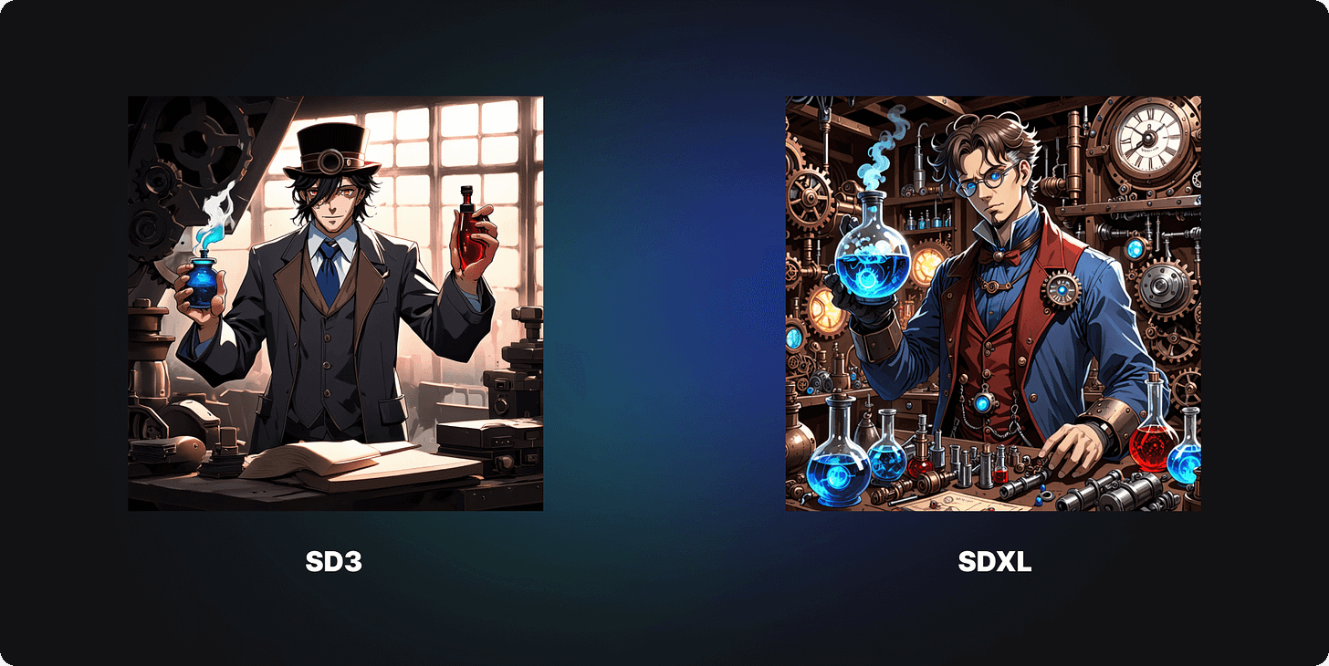Comparison between SD3 and SDXL